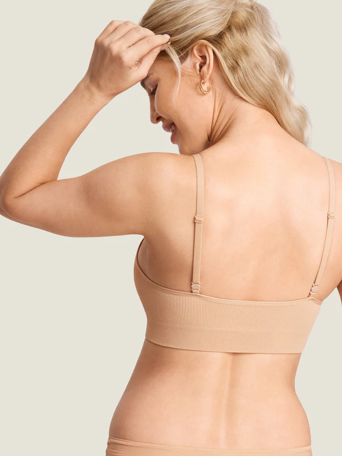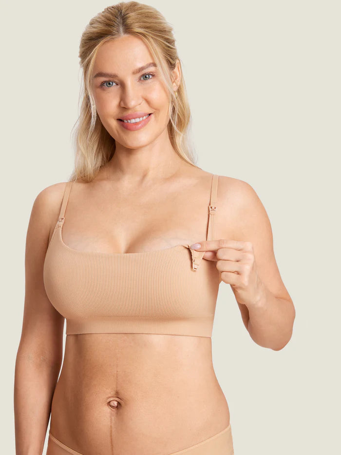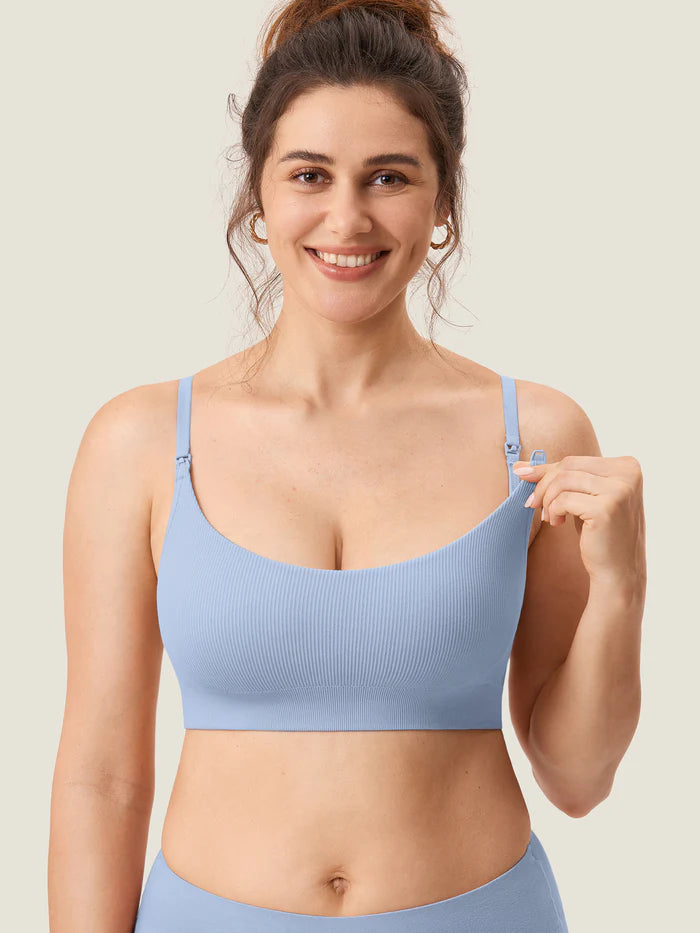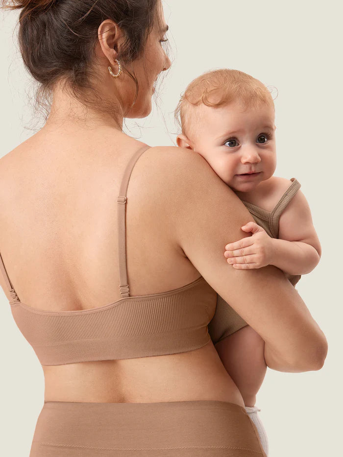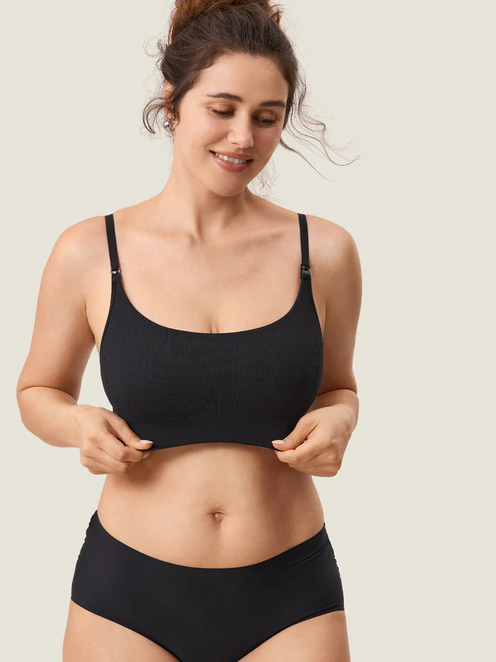 Your rib-cage and cup size may increase over the course of pregnancy, and even more in the first few months of breastfeeding. Our nursing bralette was designed to have flex upwards in both band and cup size to accommodate the normal fluctuations that many people experience in pregnancy and breastfeeding.