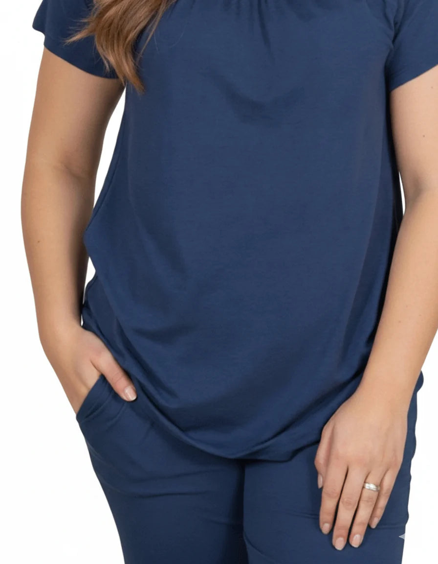 Stay comfortable and stylish with the 2-piece set in an elegant navy color, perfect for lounging or casual wear.