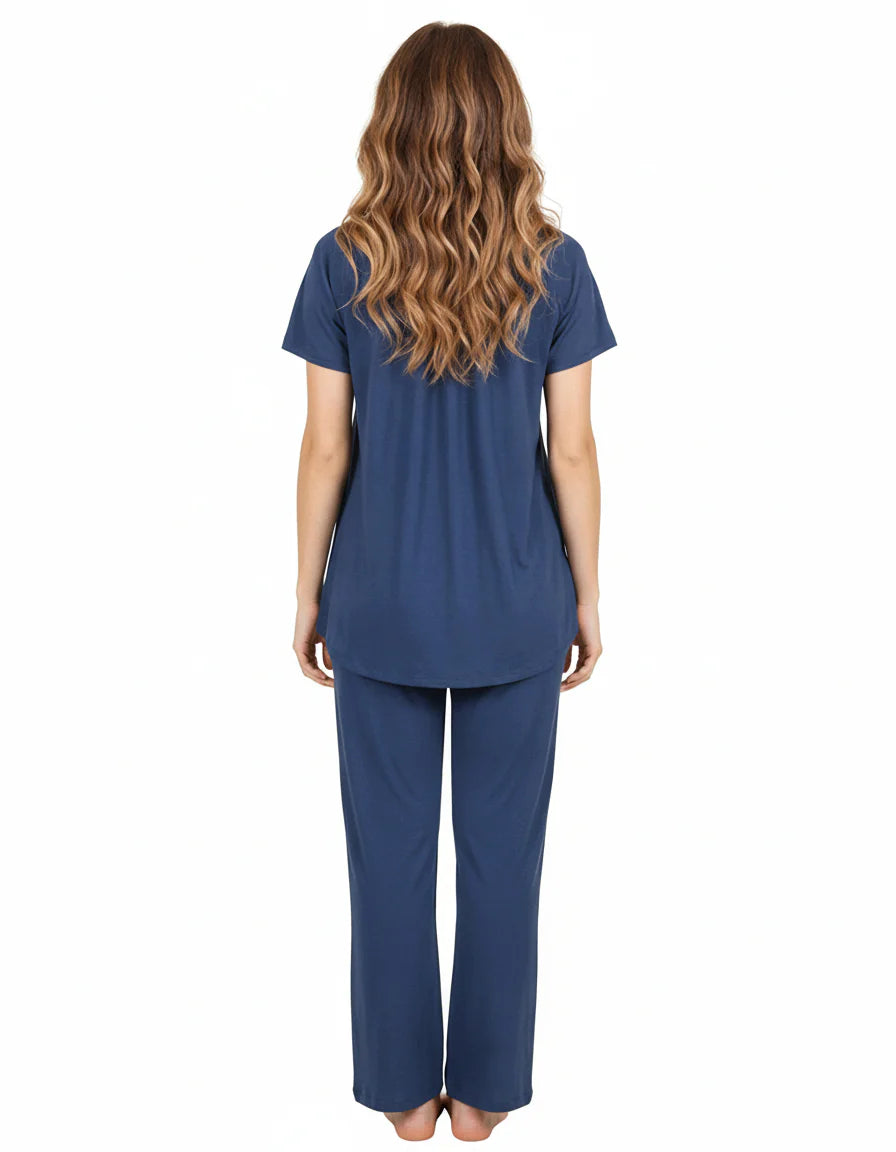 2 PIECE Cotton Viscose PAJAMA SET -NAVY